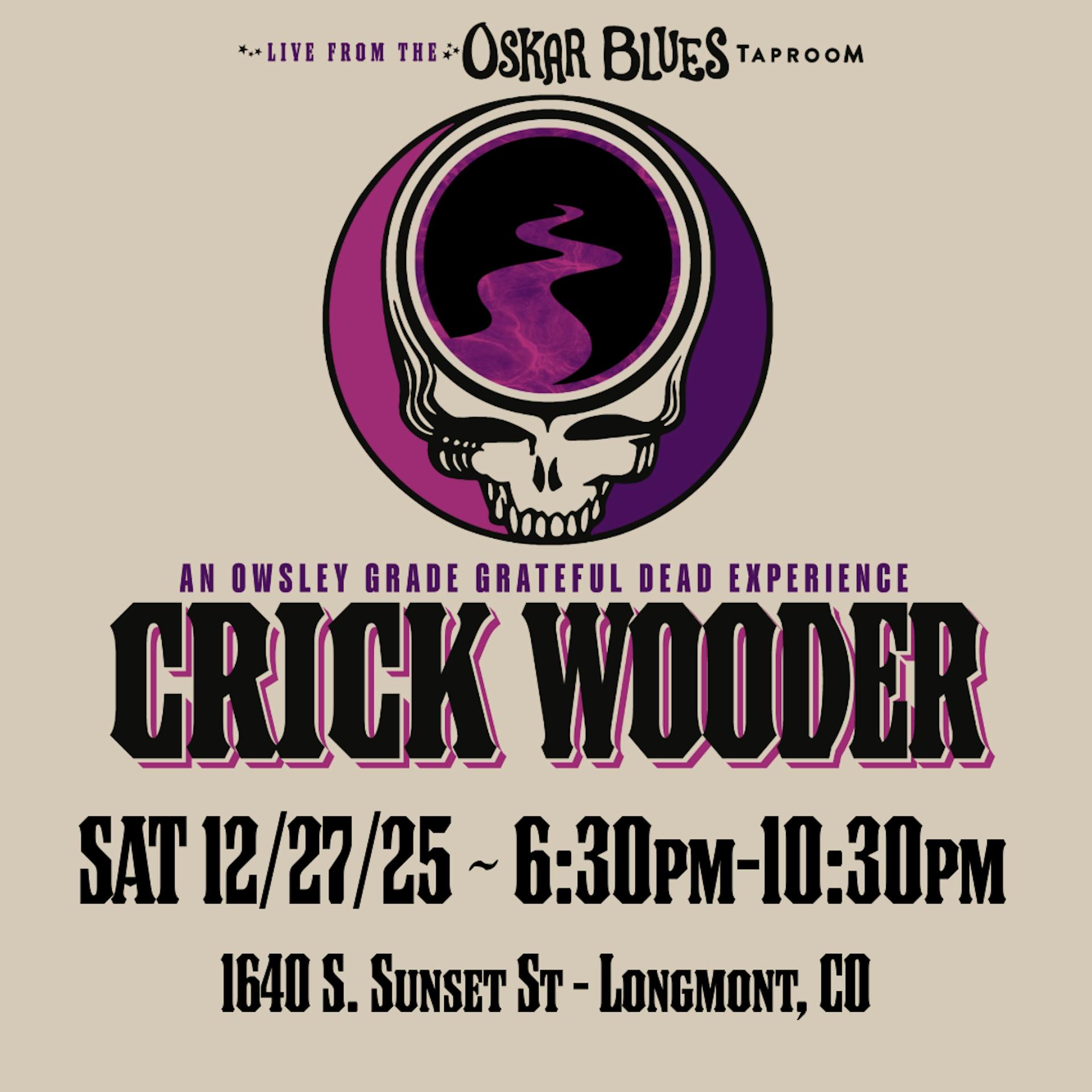 Come celebrate, New Year’s Eve-Eve-Eve-Eve-Eve with us on Saturday, December 27! We have Crick Wooder bringing you an Owsley grade Grateful Dead experience with some of your favorite Dead tunes to the Oskar Blues Brewery taproom!