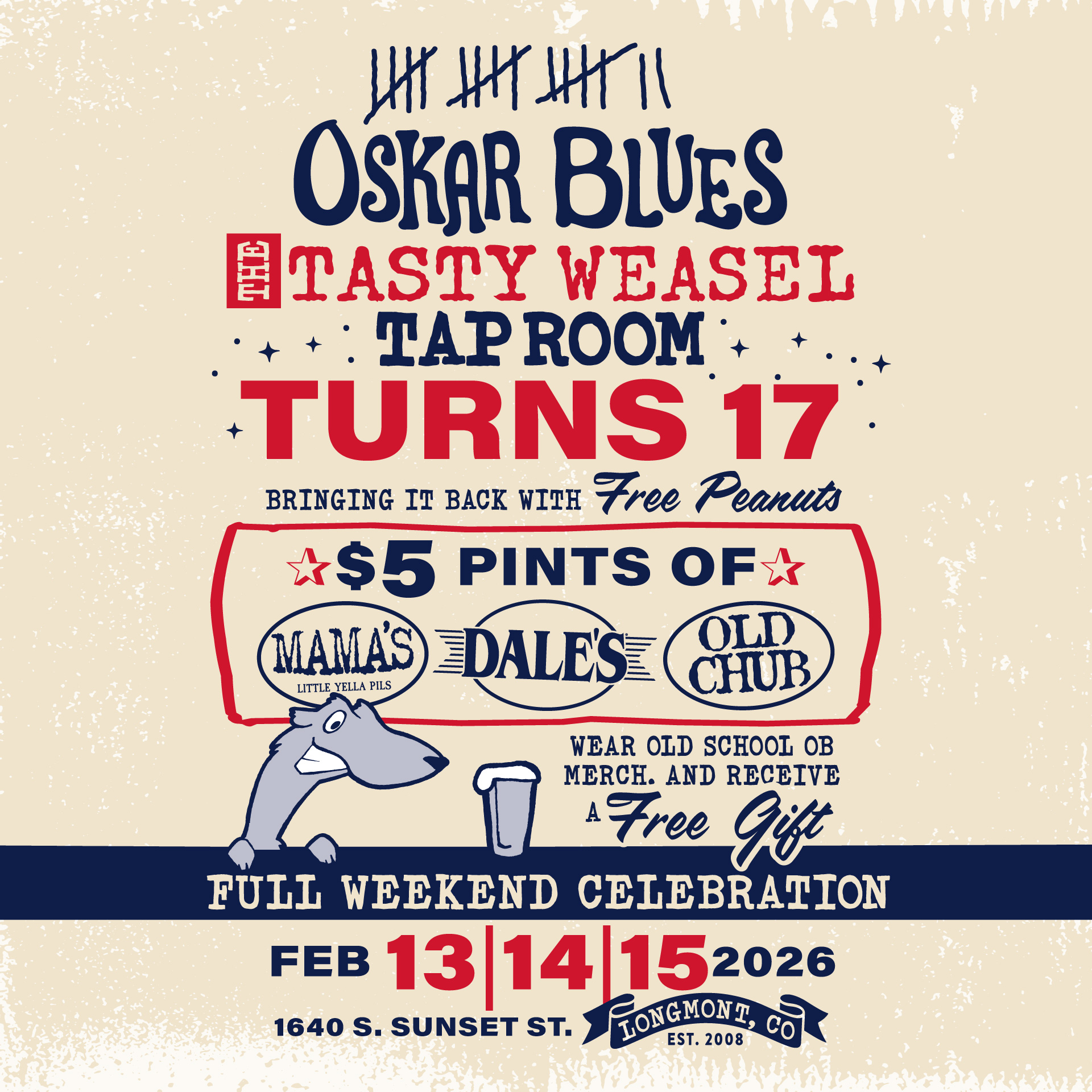 Come raise a pint and help us celebrate 17 years of the Tasty Weasel in Longmont.